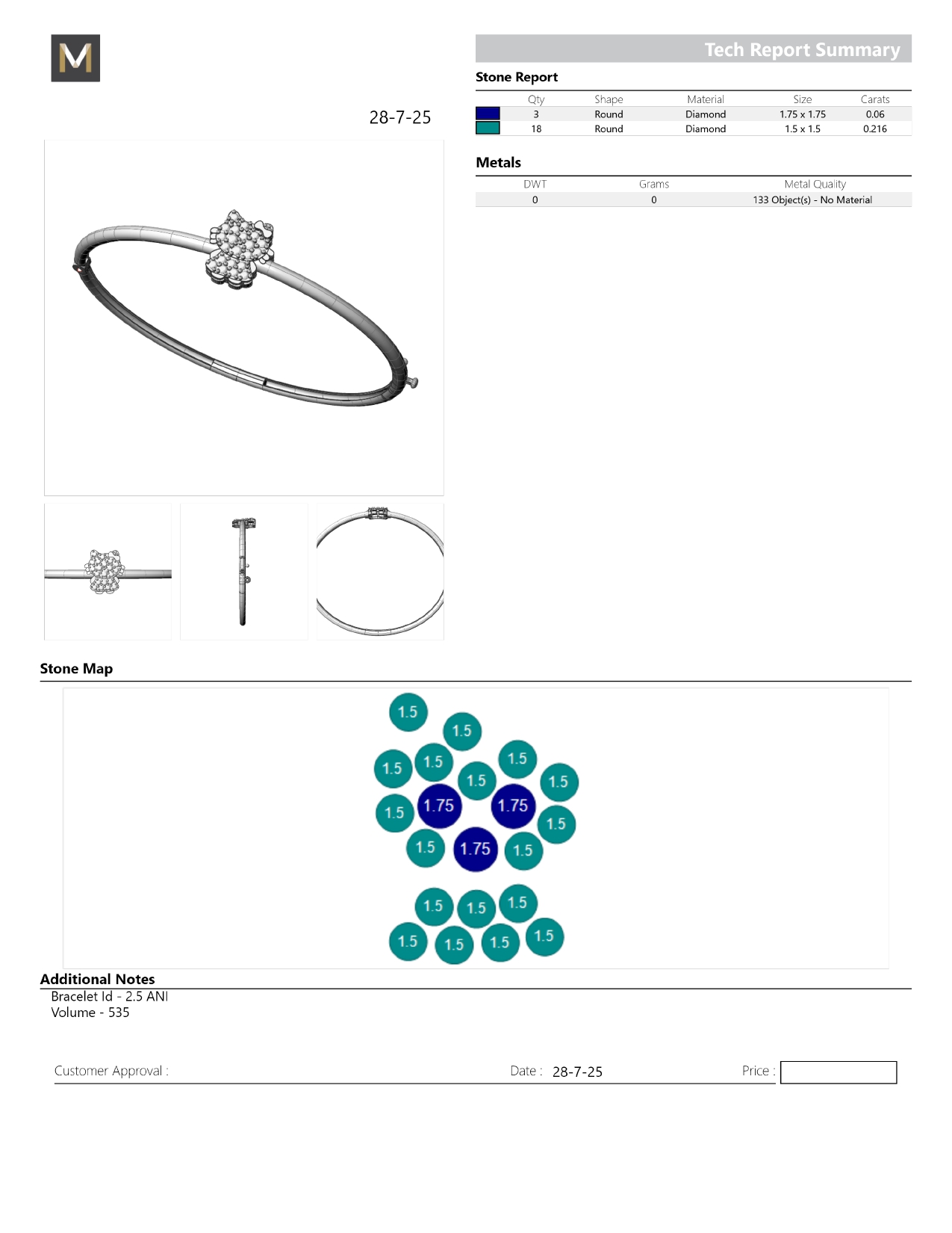 | S.No | Product Size | Stone Shape | Stone Size | Total Quantity |